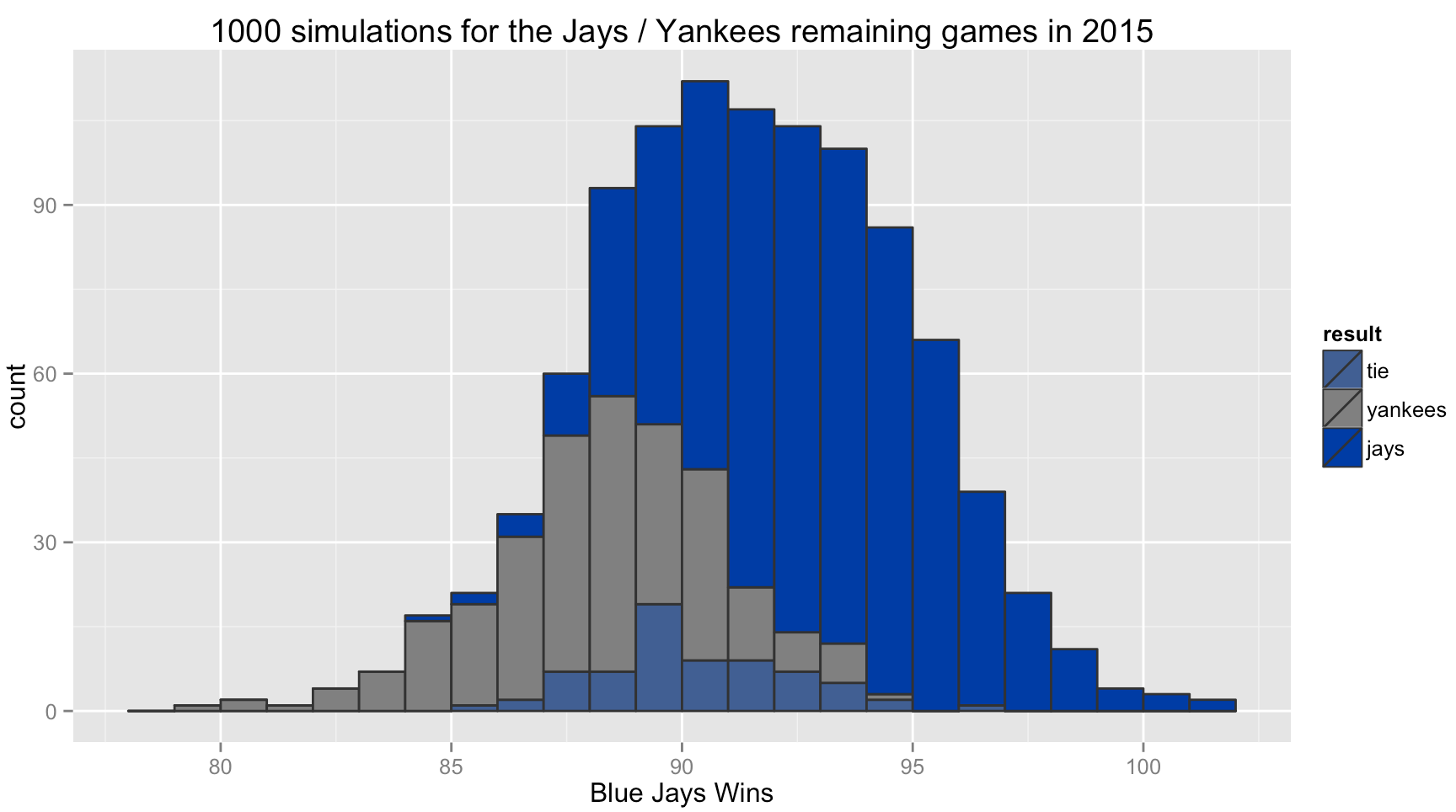 Okay, okay, so what I’m saying is this is motivated by my fandom, but I ran some a simple simulation for the rest of the MLB season for the Blue Jays and Yankees.